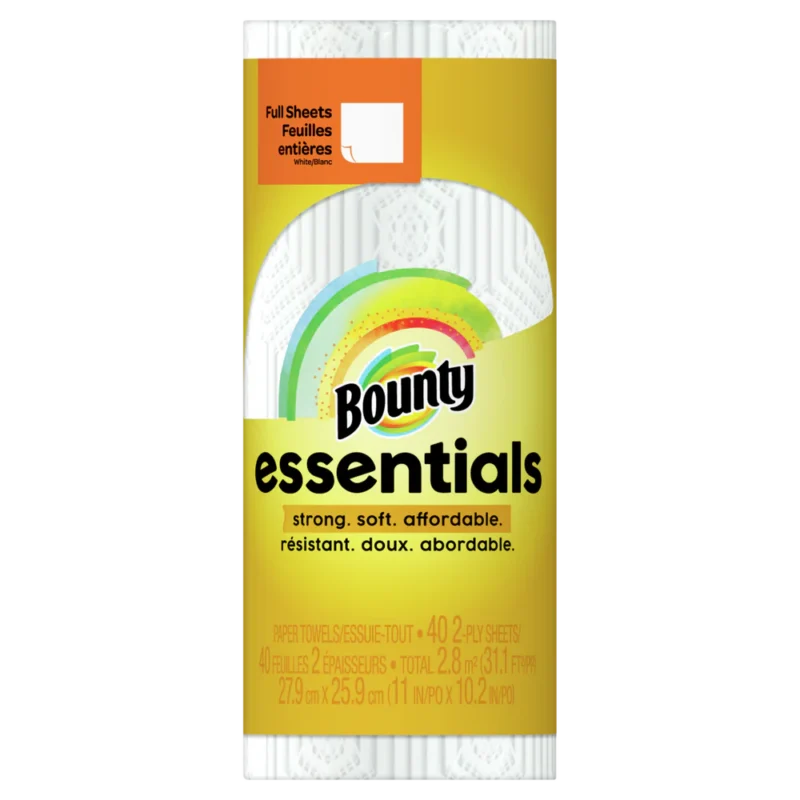 Bounty Essentials Paper Towels White 1 Regular Roll – 1ct/30pk