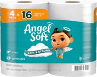 Angel Soft Toilet Paper, 4 Mega Rolls = 16 Regular Rolls, Soft and Strong Toilet Tissue